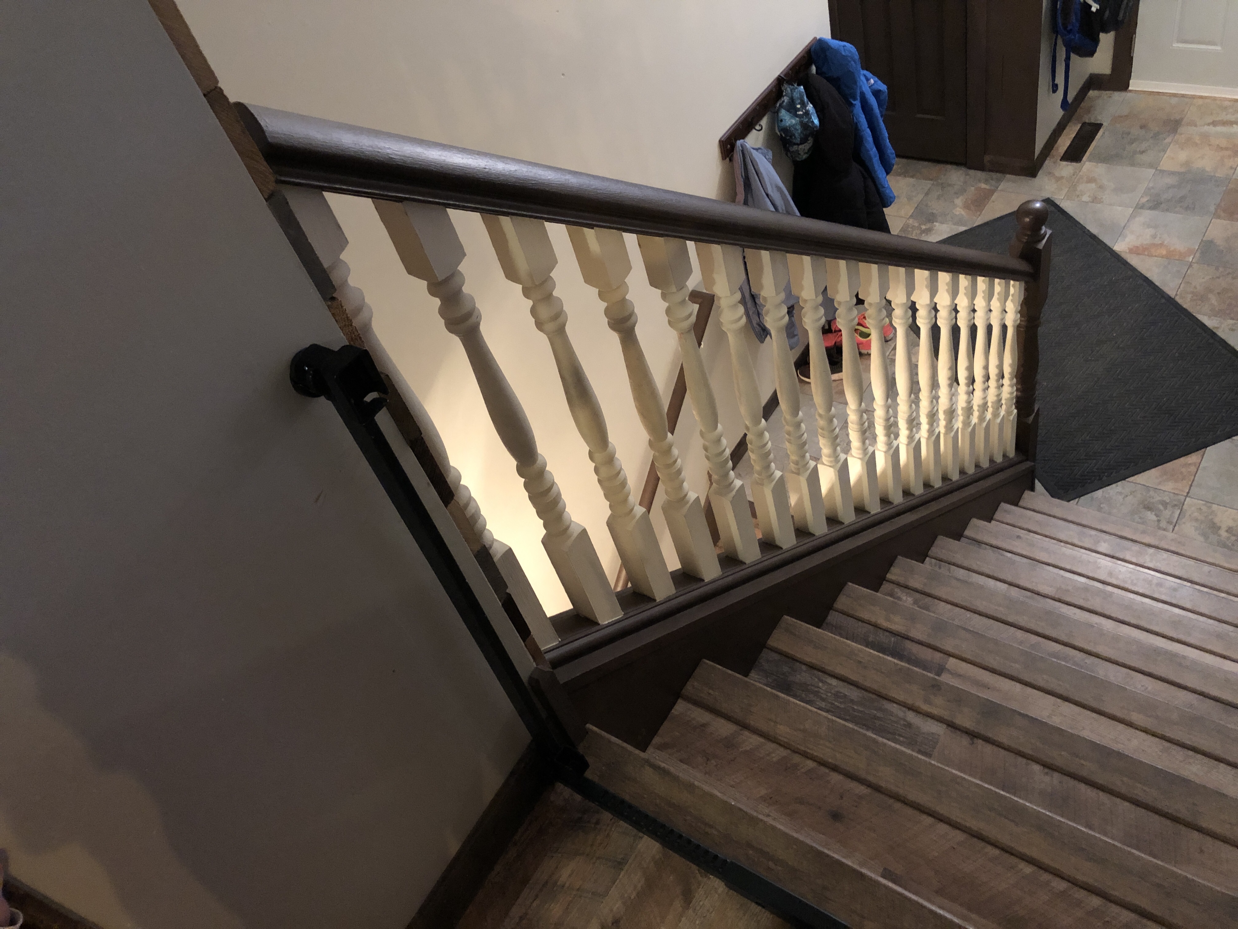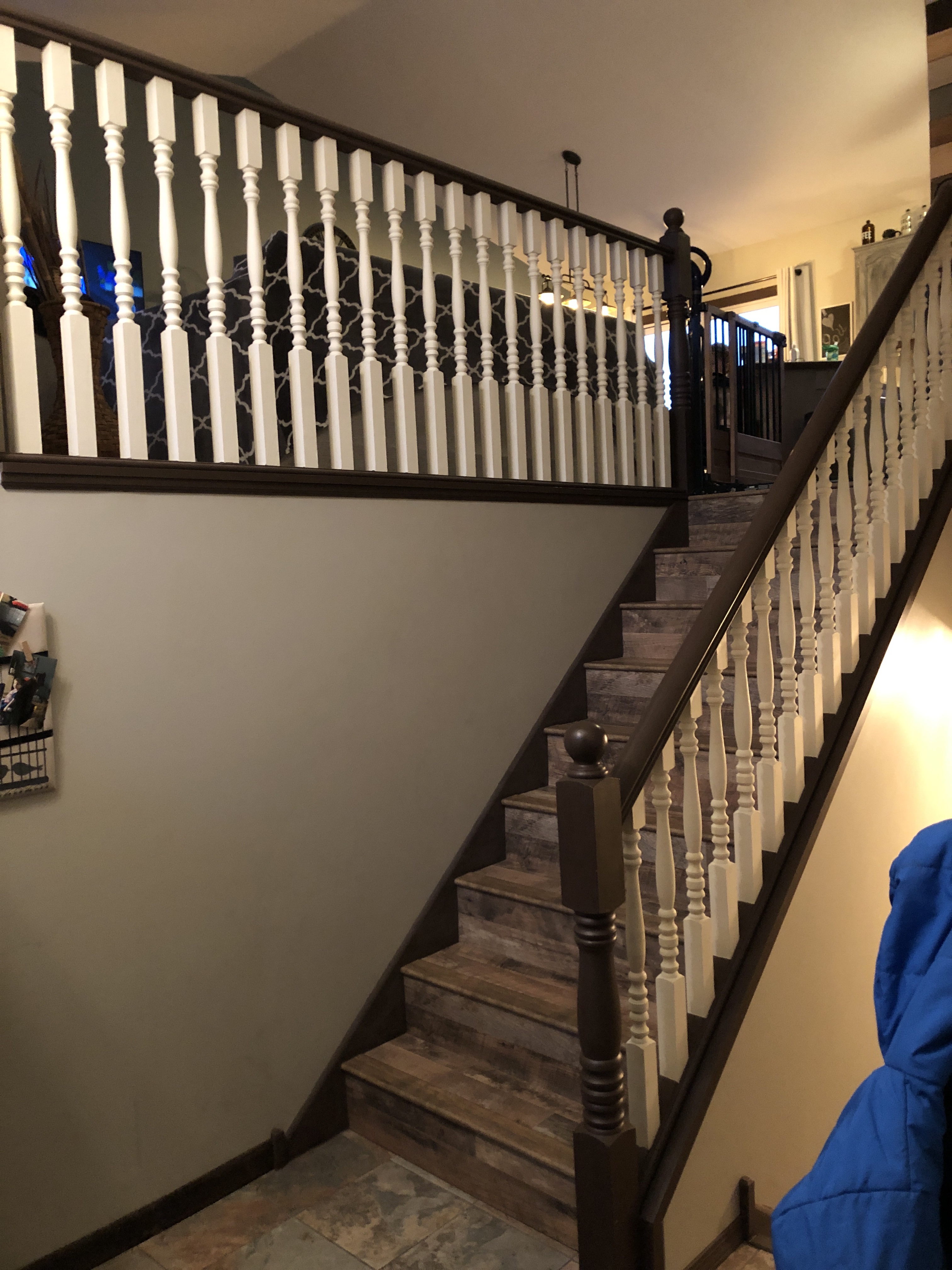 In my pursuit to add farmhouse looks to our house. I needed to refinish or paint our railings. The stain was wearing off and you could see the railings were looking aged and rough.