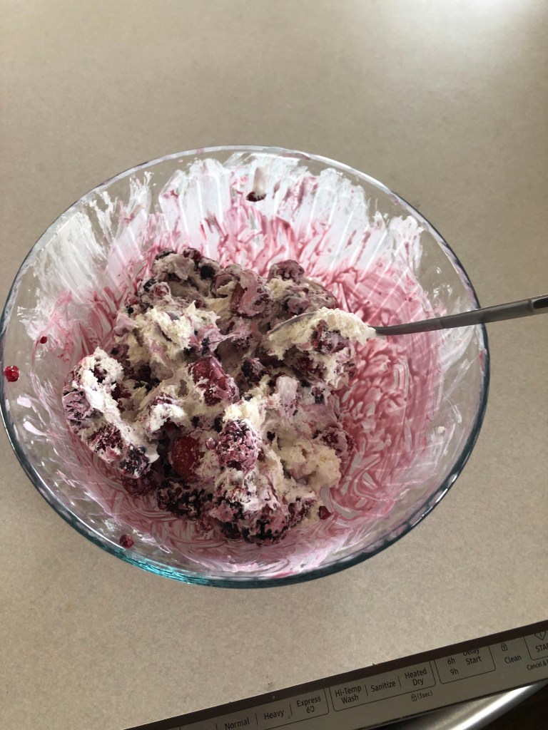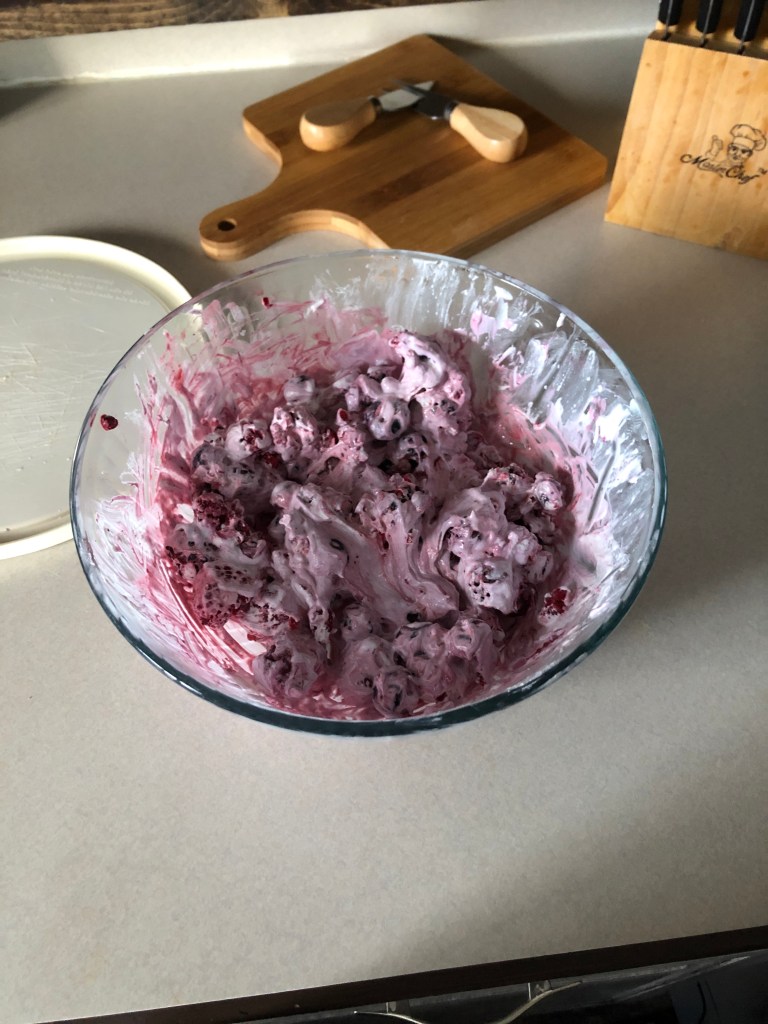 Let both the whip and fruit sit out to soften for 30 minutes.